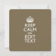 Your personalised Keep Calm saying on a fine custom taupe colour style decor. A personalised Keep Calm style saying on a one of a kind gift. Humourous or whimsical try on your creative words on two editable lines of text. Remember to use CAPITAL letters for best results.