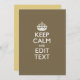 Your personalised Keep Calm saying on a fine custom taupe colour style decor. A personalised Keep Calm style saying on a one of a kind gift. Humourous or whimsical try on your creative words on two editable lines of text. Remember to use CAPITAL letters for best results.