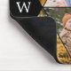 Stylish and unique mouse pad printed with a geometric photo collage with six of your photos in triangular frames. Add your initial in white between two taupe sprigs that match the printed black and light brown plaid pattern.