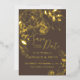 This "Save the Date" announcement design features gold foil peonies and foliage in a modern, minimal line drawing style. The matching gold foil font features classic serifs and a handwritten cursive typography. The back is blank with plenty of room to add additional text or a photo of the couple.