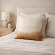 Grounded neutral design featuring a warm ivory field with a structured taupe stripe and soft gold linework along the lower third. The balanced layout adds visual weight and polish, making it ideal for sofas, accent chairs, or layered bedroom styling in refined neutral spaces.