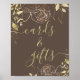 This poster design features gold peonies and foliage in a modern, minimal line drawing style on a solid background. "Cards & Gifts" in the matching gold font features a handwritten cursive typography. This sign is the perfect way to let wedding or shower guests know where to leave their gifts.