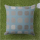 Taupe Grey Round Squares Pattern On Slate Blue Cushion
