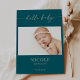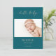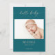 Welcome your precious miracle in timeless style with this taupe minimal hello baby photo announcement card. The design features an elegant calligraphy script in taupe, which reads "hello baby", a teal and white background to highlight your baby's first portrait, names, birthdate, etc. Add a personalized message on the back to share with friends, family and loved ones.