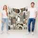 Taupe Mocha Abstract Grain Arcs Pattern Penguin Fleece Blanket