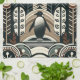 Step into a world where nature and geometry blend seamlessly. This design showcases a majestic penguin at the centre, set against an intricate backdrop of stylised trees, leaves, and patterns, evoking the serene beauty of a forest. The artful use of earthy tones and contrasting shapes makes this design a visual retreat for lovers of wildlife and modern aesthetics. Ideal for anyone seeking to bring a touch of nature's calmness and the sophistication of structured design into their space. Perfect for sprucing up any room or gifting to those who appreciate wildlife art with a contemporary twist.