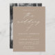 Minimalist, modern wedding invitation featuring your wedding details in simple white lettering with "the wedding of" in an elegant calligraphy script with a taupe background. The invite reverses to display your vertical engagement photo. Designed to coordinate with our Modern Elegance wedding collection.