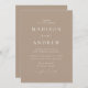 Minimalist, modern wedding invitation featuring your wedding details in white lettering with calligraphy script accents. The taupe background can be changed to a colour of your choice. Designed to coordinate with our Modern Elegance wedding collection.