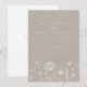 The soft taupe background offers a warm, contemporary neutral that feels both elevated and timeless, while the airy typography creates a balanced and graceful layout. A subtle wildflower illustration along the bottom adds just the right amount of detail without overwhelming the design. The reverse side includes a personalized monogram and date, creating a meaningful and keepsake-worthy finish.