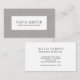 Elegant business cards for feminine business, home staging, textile, upholsterer, furniture refinisher or other business featuring a PRINTED grey taupe coloured linen texture and your name and title on the front in refined typography in trendy grey colour.