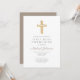 Personalized Taupe Script Religious Cross Boy First Communion Invitation.