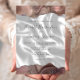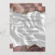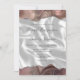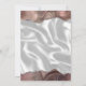 The top and bottom edges of this elegant modern wedding invitation feature a taupe watercolor agate border trimmed with faux silver glitter. The customisable text combines handwriting, sans serif and italic fonts in charcoal grey on a background image of white silk. The reverse side features a matching agate and silk design.