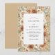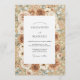 This design features a rustic, abundant display of taupe and cream blossoms, reminiscent of a dried floral arrangement. Lush greenery intertwines with the muted tones, creating a warm and natural ambiance for your special day. The detailed floral artwork evokes a sense of timeless elegance.
