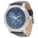 Watch featuring the zodiac symbol for Taurus in soft silver blue, overlaid with the stars of the constellation, against a dark blue, starry sky background