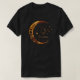 This moon and stars zodiac design t-shirt features the Taurus horoscope sign and star constellation surrounded by a crescent moon in an earth tone starfield.