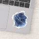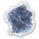 This contour-cut sticker features an artistic representation of the Taurus constellation set against a watercolor backdrop that mimics a starry night sky. The design incorporates shades of deep blue and white, suggesting the vastness and mystery of space. The constellation itself is depicted by simple white lines connecting stars, which are represented by brighter white dots. Below the constellation, the word “Taurus” is written in a clear, bold typeface, grounding the design with a touch of modernity.