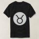 Taurus symbol in black. NB This design can be customised the motif appears as a simple black symbol on light shirts, or as a black symbol in a white circle on dark shirts.