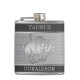The flask itself is fine. It’s a cheap flask, obviously bought in bulk, however am prepared to overlook that. Given that it is a personalized item, I would have liked to have seen gift boxing instead of the generic packaging. Terrible printing, and/or quality. It’s a cheap, tacky vinyl. It is not cut straight and is also applied in a way that it is overhanging the bottom, causing the glue to catch on items and it will eventually roll and tear, damaging the wrap.