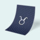 A silver chrome like Taurus Zodiac Sign on a navy blue carbon fibre style print background. A modern urban racy design for a great custom gift idea.