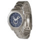 A silver chrome like Taurus Zodiac Sign on a navy blue carbon fiber style print decor. A modern urban racy design for a great custom fashion watch gift idea.