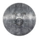 A grunge steel style Taurus Zodiac Symbol on a distressed metallic like grey print background. A modern urban racy design for a great custom gift idea.