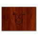 A stylish modern Taurus Zodiac Symbol on rich brown mahogany wood grain print background. A modern urban elegant design for a great custom gift idea.
