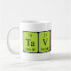Tavion spelled out as Ta V I O N (Tantalum Vanadium Iodine Oxygen Nitrogen) on a mug for the scientist in you.