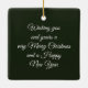This wildlife ceramic ornament features an illustration of an owl amongst Christmas season greenery. On the backside of the ornament is a holiday greeting. You may buy as shown or personalise with your own words.. (owl illustration by Pixabay)