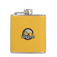 The flask itself is fine. It’s a cheap flask, obviously bought in bulk, however am prepared to overlook that. Given that it is a personalized item, I would have liked to have seen gift boxing instead of the generic packaging. Terrible printing, and/or quality. It’s a cheap, tacky vinyl. It is not cut straight and is also applied in a way that it is overhanging the bottom, causing the glue to catch on items and it will eventually roll and tear, damaging the wrap.