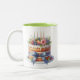Taza de cerámica “Happy Birthday” con un diseño fresco y encantador, perfecta para celebrar cumpleaños de una forma especial. Presenta una ilustración de una deliciosa torta decorada con frutas en tonos suaves, acompañada de detalles sutiles que transmiten alegría y calidez. Su interior y asa en color verde le dan un toque moderno y vibrante. Ideal como regalo original o para disfrutar de tu bebida favorita en un día especial.