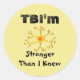 Raising brain injury and TBI awareness with stickers, buttons, t-shirts, ball caps and more. This sticker says, "TBI'm Stronger Than I Knew" which pretty much describes everyone who has experienced a traumatic or anoxic brain injury.