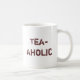 Mug with dark brown writing that let`s everyone know you`re an avid tea drinker. Such a great gift idea!
