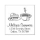 A steaming cup of tea next to a piece of cake on a plate. Customise with your own address.