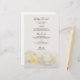 Customize the elegant Tea Cup and White Rose Wedding Menu with the details of the meal that you will serve at your tea party bridal shower luncheon, post wedding brunch or marriage reception dinner by adding the salad or first course, entree or second course and dessert or third course. Personalize it with the names of the bride and groom, event venue and date. This classy custom high tea inspo menu features a floral style photograph of a tea cup and saucer with gold edges and a white rose flower blossom with white satin.