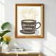 Tea Cup Brown Yellow Gold Inspirational Quote Poster