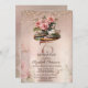 Tea Cup Flowers Glitter Rose Gold 75th Birthday Invitation