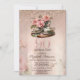 Tea Cup Flowers Glitter Rose Gold 90th Birthday Invitation