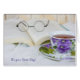 pansy floral vintage tea cup on saucer and white fur with open book for Name Day