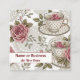 tea cups in a creme colour and roses in a rose shades with sage leaves, float on a creme background. All text is easily customisable.