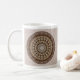 Beautiful, round mandala design. Within it contains an intricate kaleidoscopic design in natural brown shades of colour for an antique, vintage, tea dyed feel that captures the imagination. This element is against a textured background, with light drop shadow giving a solid sphere appearance. Makes a wonderful gift for those who love working with mandalas, and also those that love colourful, unique, abstract artwork.
