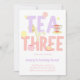 Tea For Three Birthday Pink Pastel Tea Party Invitation