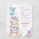 Tea For Three Birthday Purple Floral Tea Party Invitation