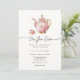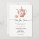 Baby Shower invitation featuring a chinoiserie teapot perfect for a Baby Tea Party. Customise with your information for the mum to be. Click "click to customise further" to change the font style, size or colour.