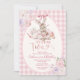 Tea For Two Easter Bunny Pink Gingham 2nd Birthday Invitation