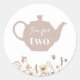 A pink teapot with 'tea for two' typography inside, along with delicate watercolour painted wildflowers along the bottom. Perfect for your 2nd Birthday tea party!