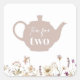 A pink teapot with 'tea for two' typography inside, along with delicate watercolour painted wildflowers along the bottom. Perfect for your 2nd Birthday tea party!