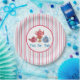This whimsical design will be the hit of any little girls tea party. In the centre of the design there are three fun teapots on a background with coordinating stripes.