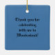Square ceramic ornament with a vintage image of the Hatter’s tea party with Alice, the Hatter, the March Hare, and Dormouse with a blue border. The back is a coordinating blue with customisable text that reads “Thank you for celebrating with me in Wonderland!" See the entire Wonderland Ornament collection in the PARTY FAVORS section.
