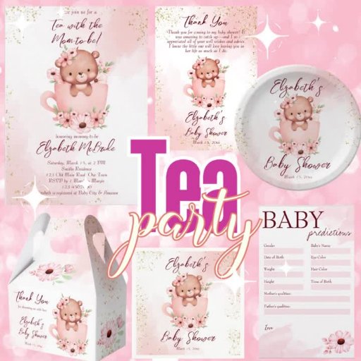 Tea party baby shower tea cup with flowers pink invitation