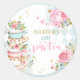 Tea Party Birthday Girl Pink & Gold Floral Par-tea Classic Round Sticker